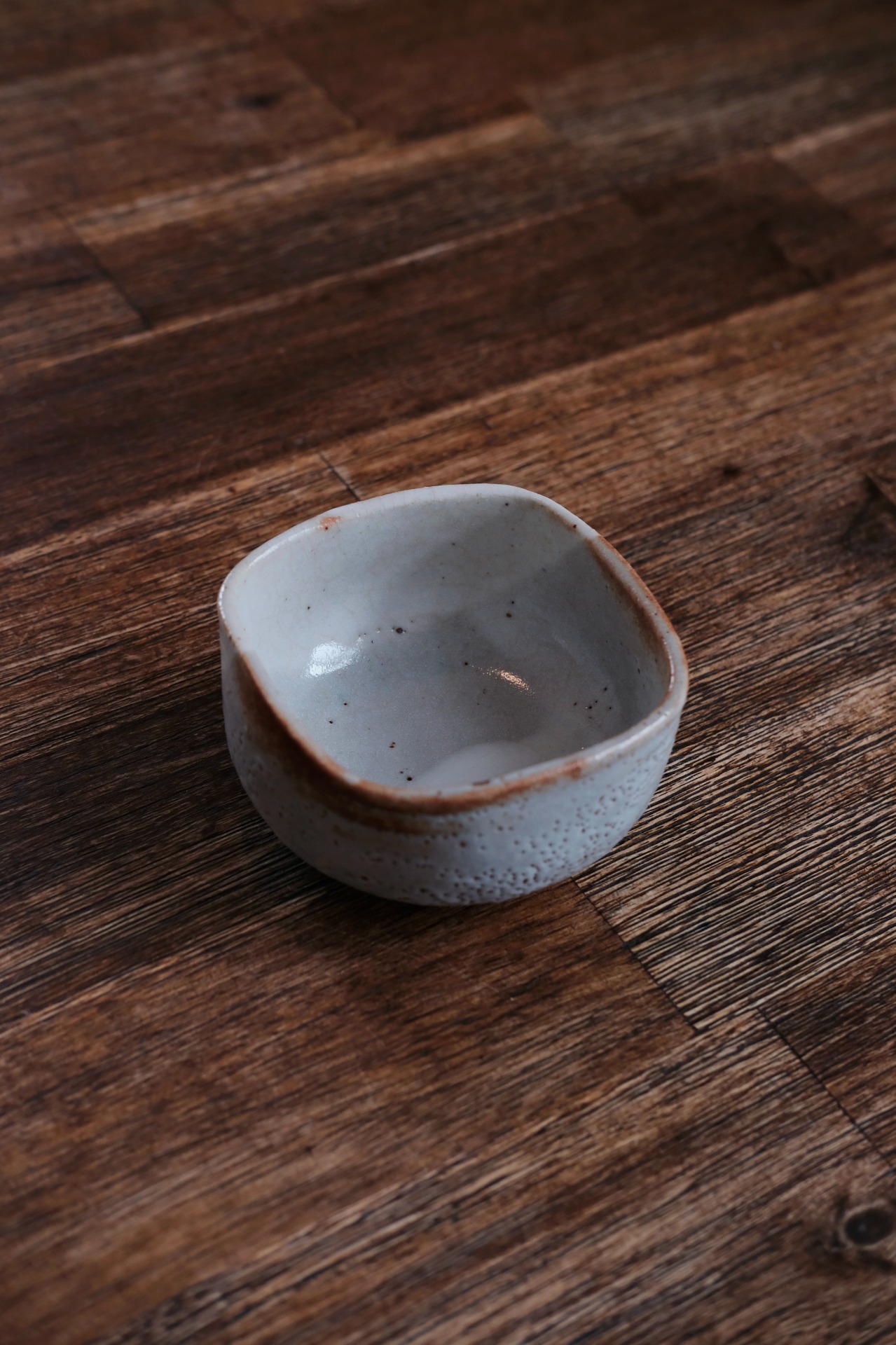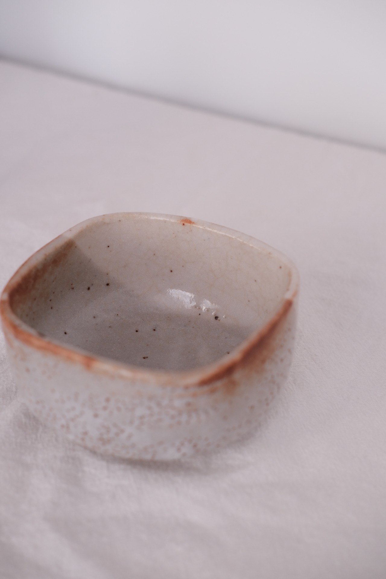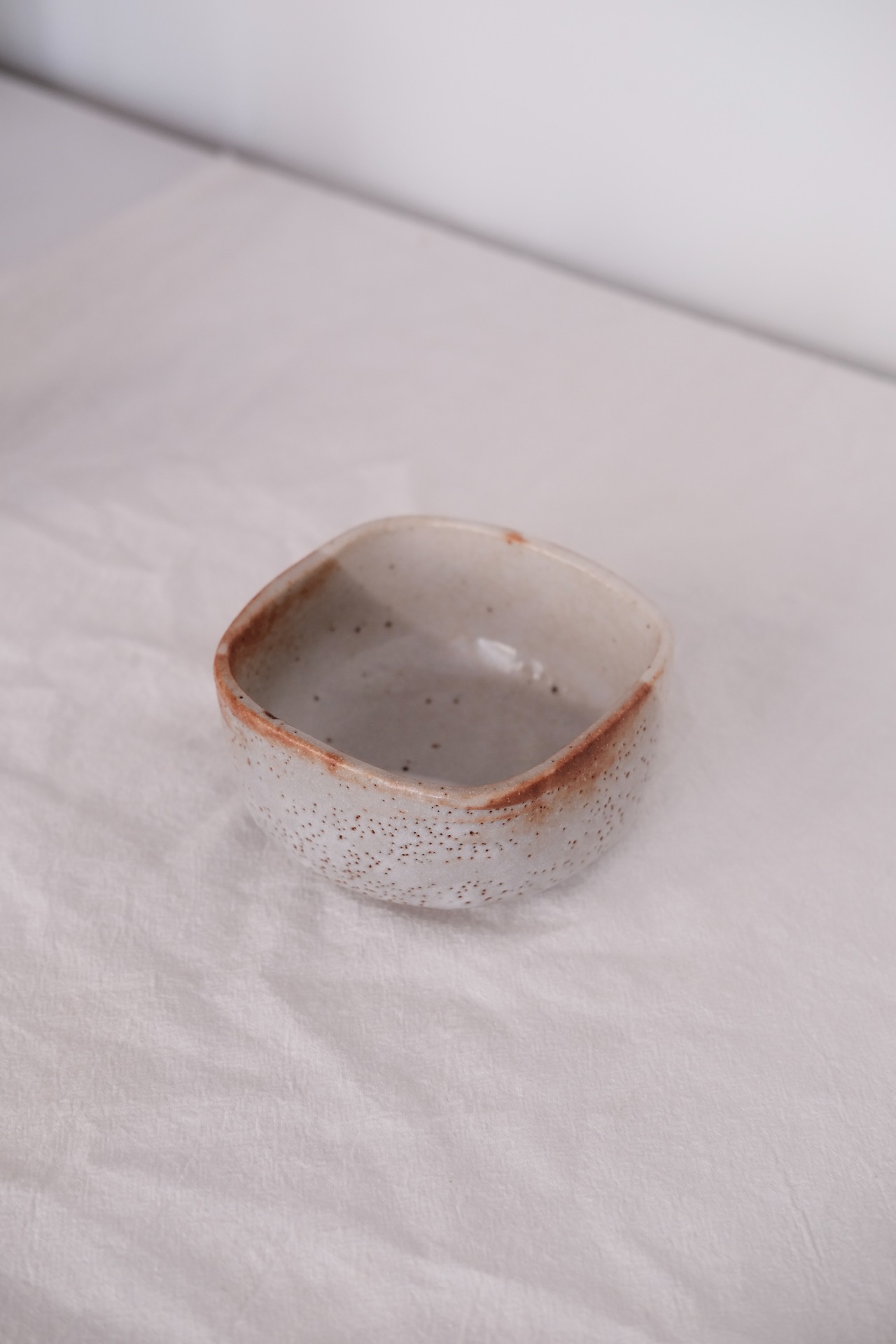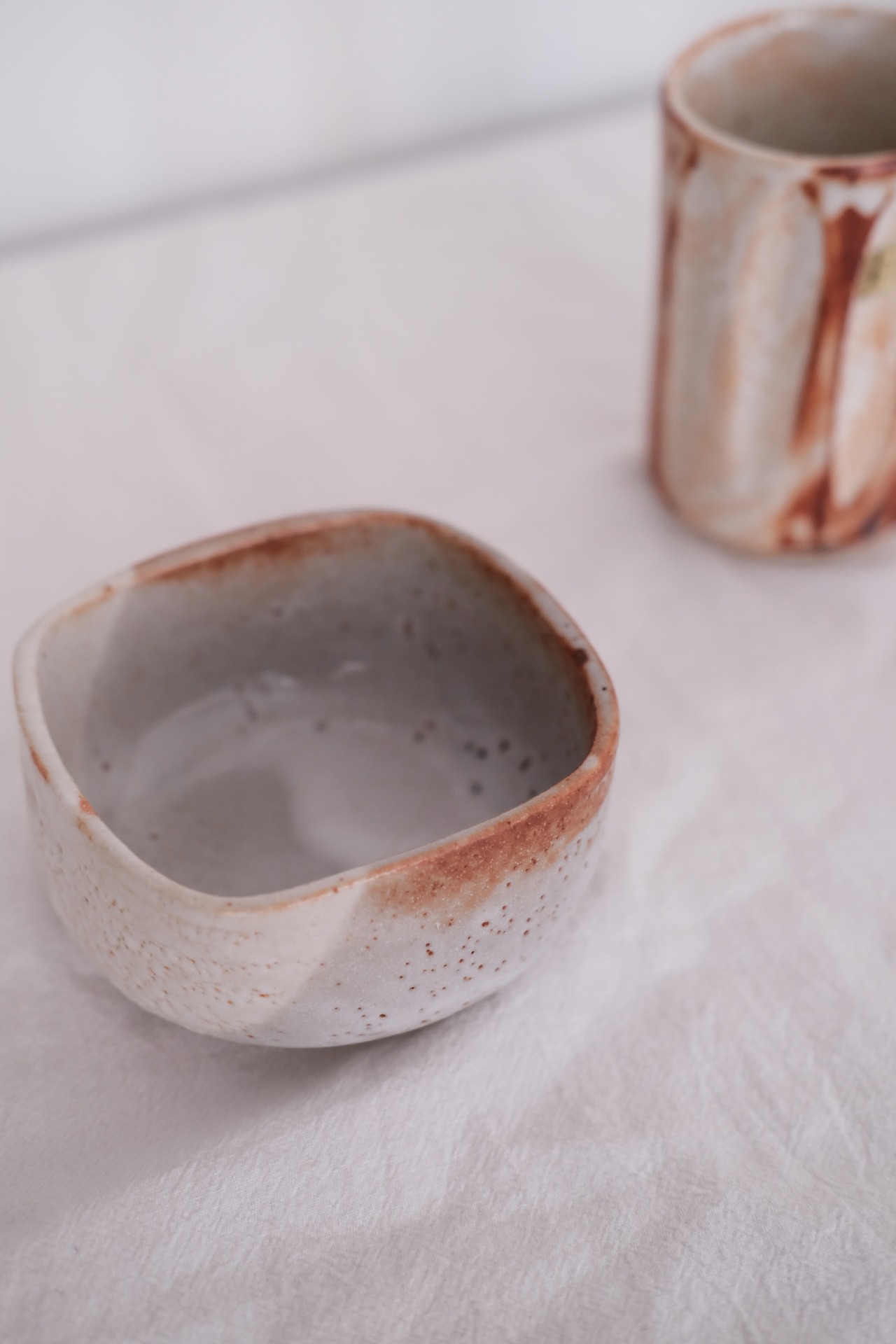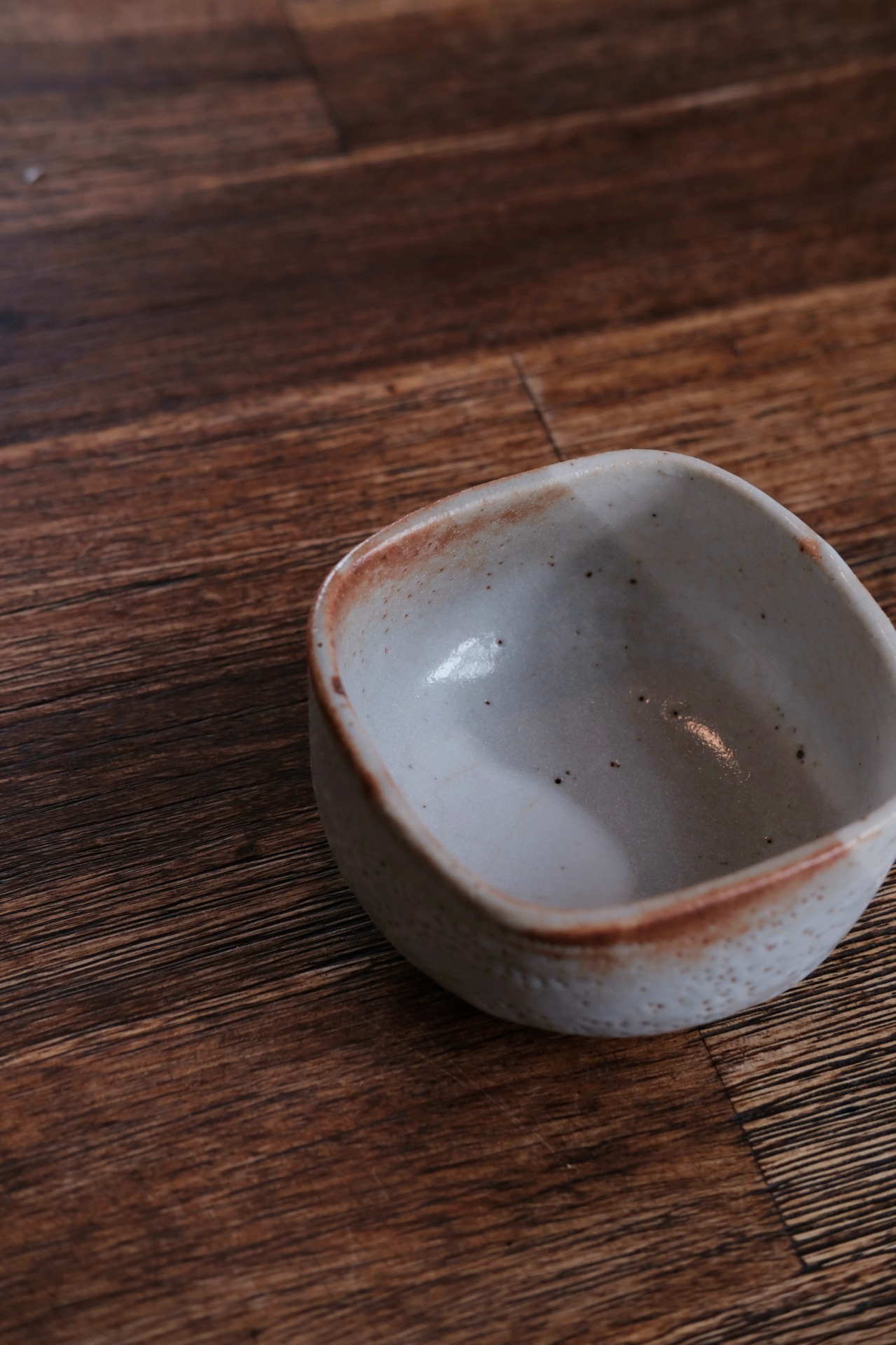 有手感的日式小方碗,灰白色的釉面像流动的云烟。