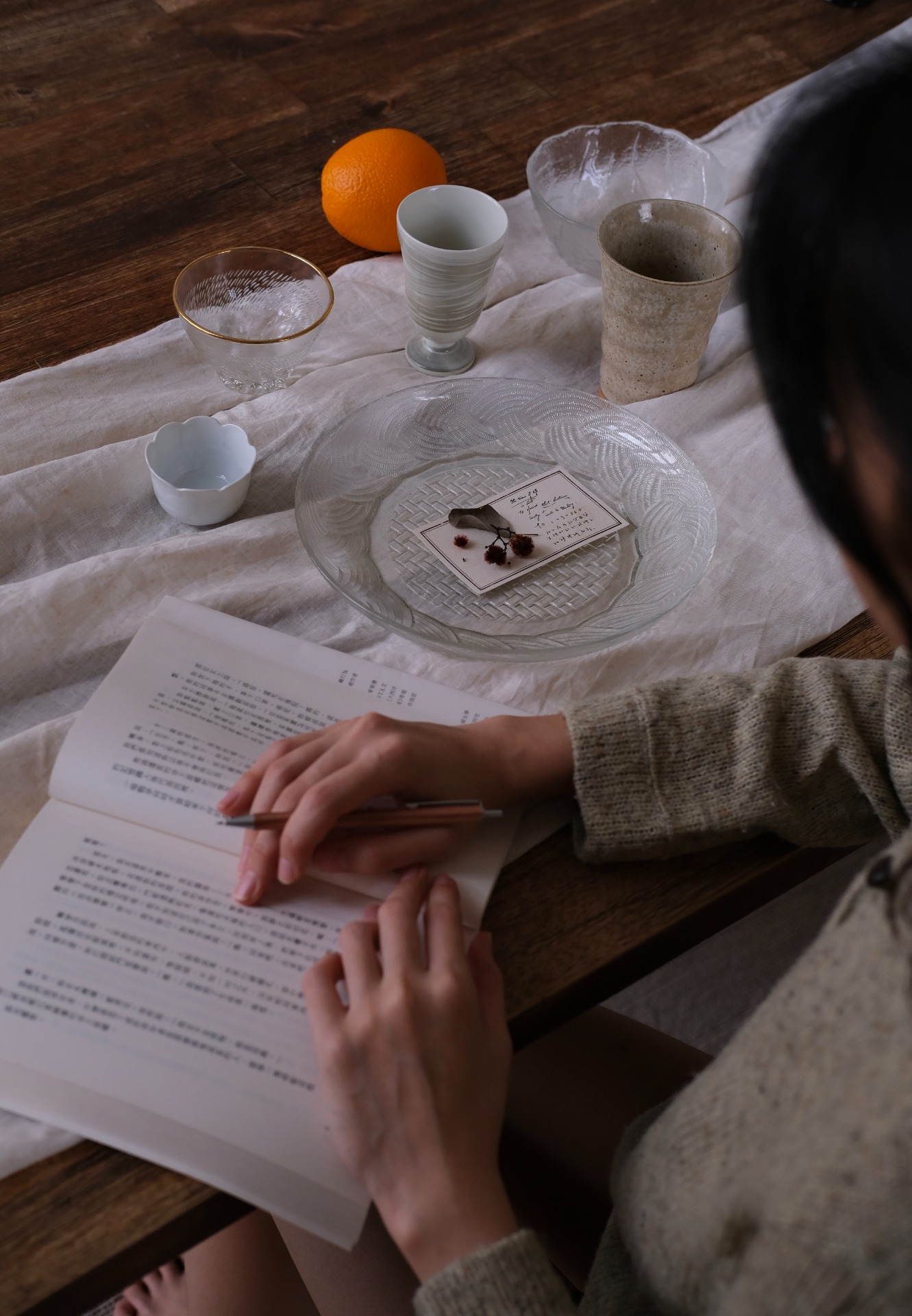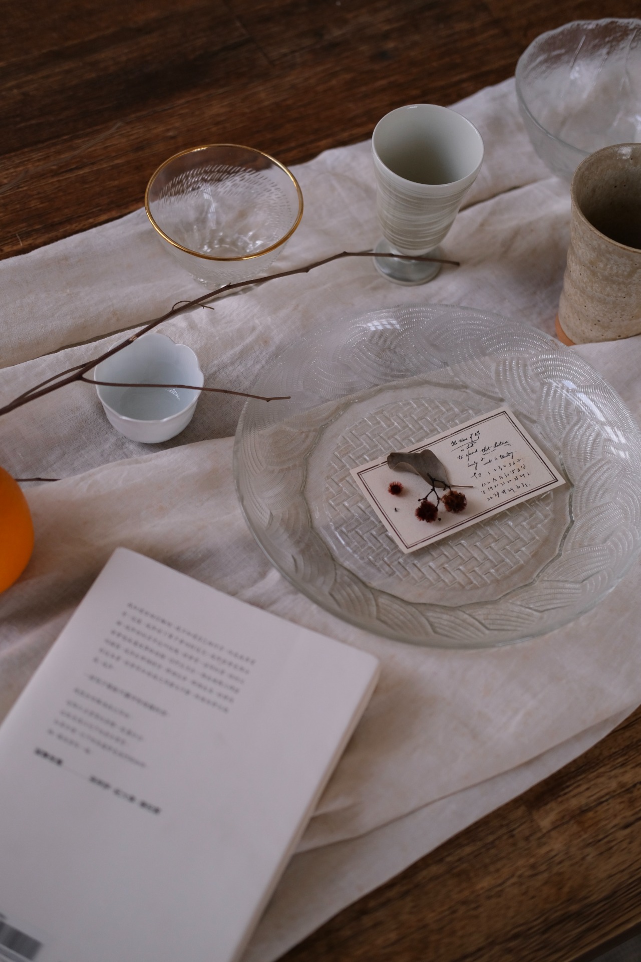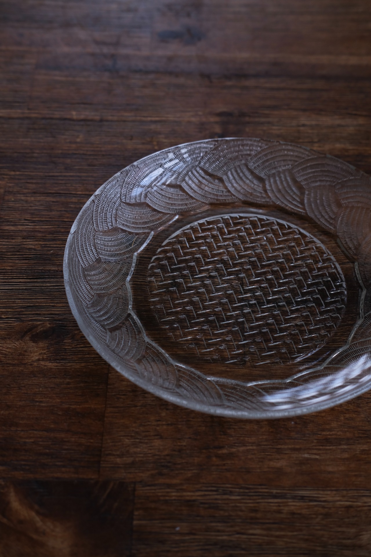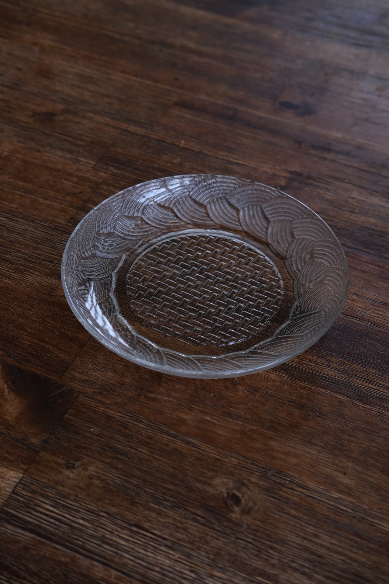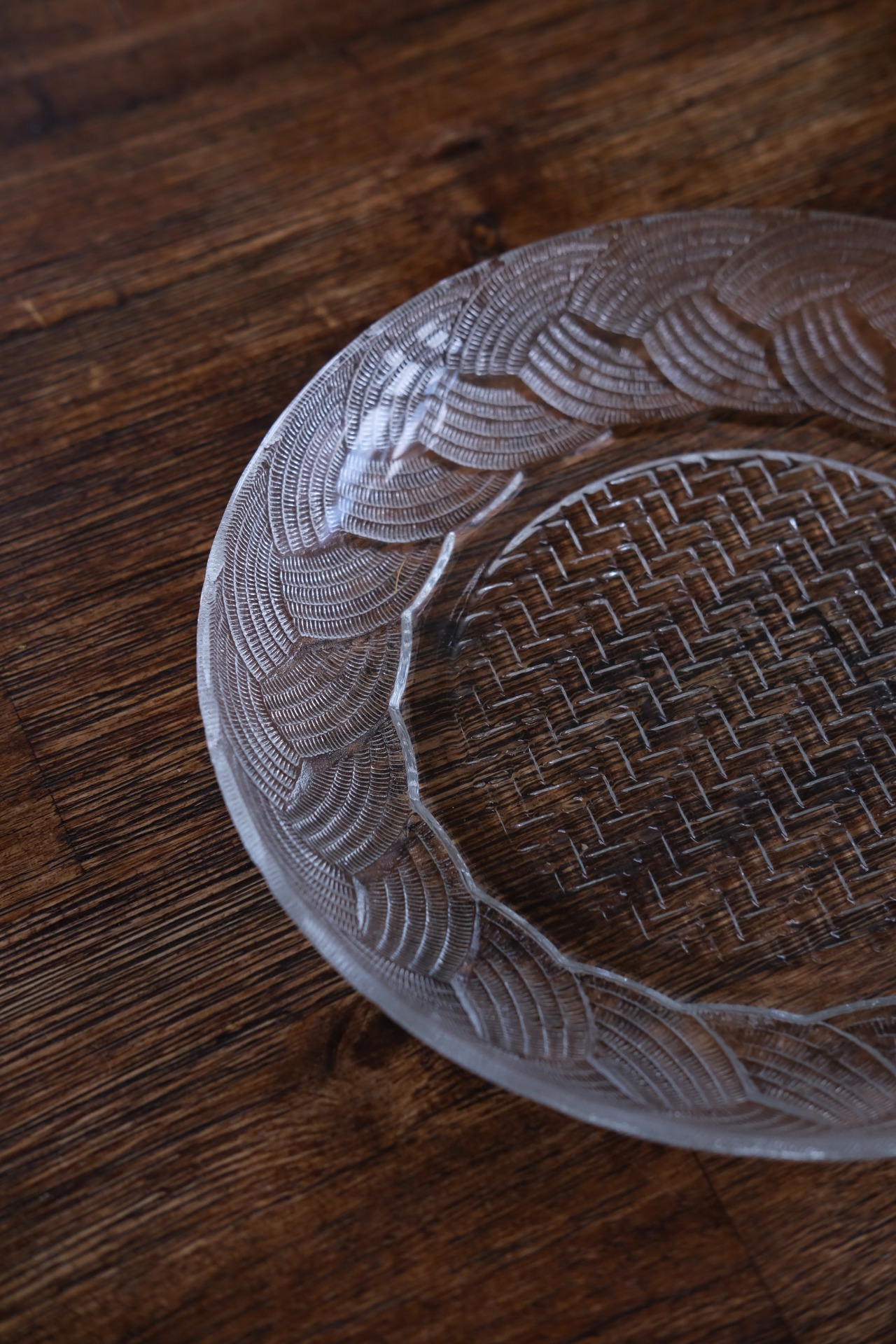 带一点东南亚风情的标准晚餐盘。玻璃中少见的做出藤编篮的样式设计。